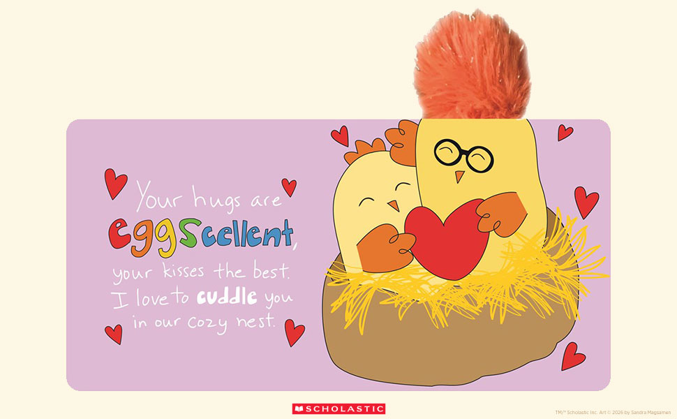 Magsamen’s punny verses and cute-as-a-button chick brim with enthusiasm that will excite and charm young children as they soak up all the praise about how they make wishes come true, show kindness, are amazing, are the best cuddle buddies, and are simply, well . . . eggstraordinary! The delightful puff of feathers atop the book add soft, tickly fun sure to elicit plenty of giggles.