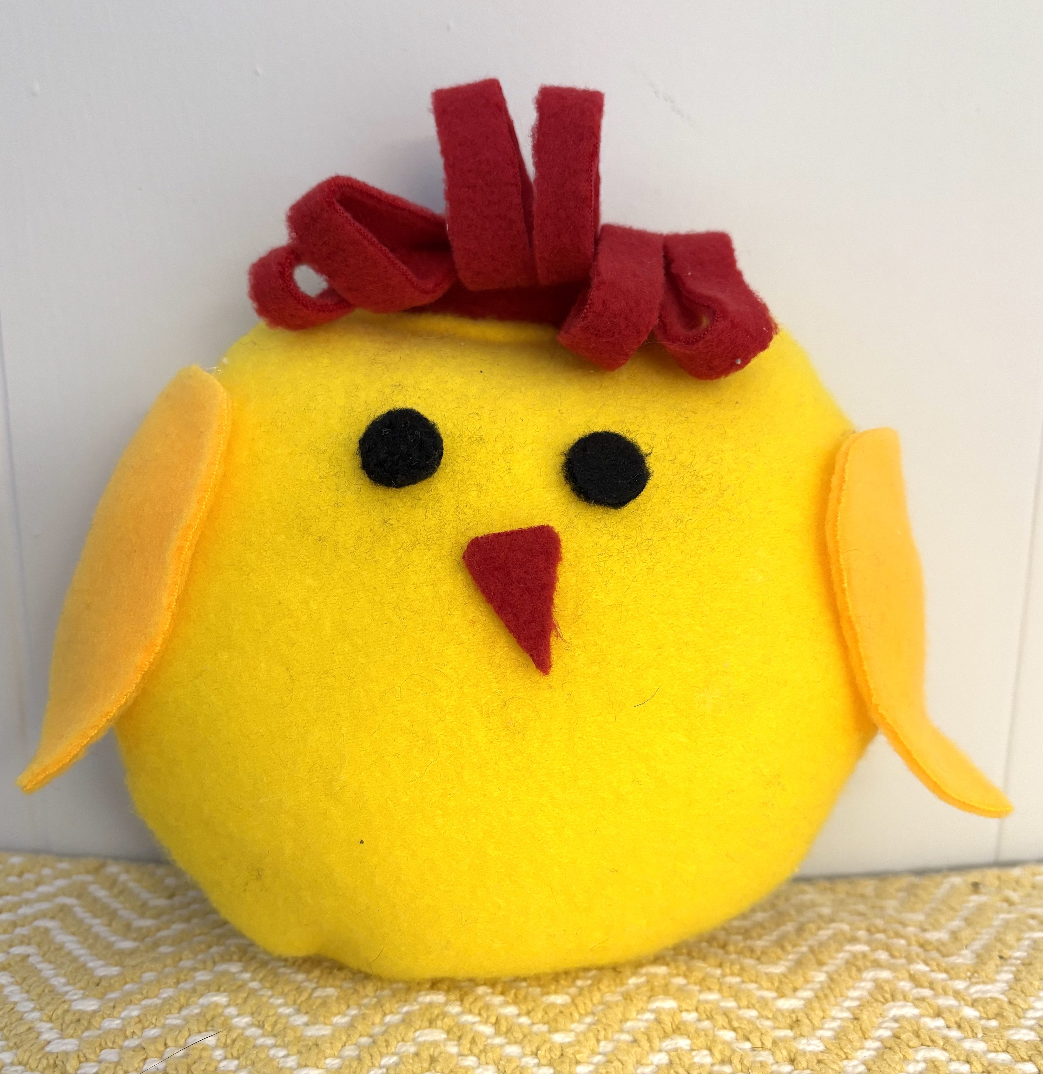- Fleece, gingham, or other fabric for the body large enough for the back and front. The size of fabric depends on the size of the chick to be made.