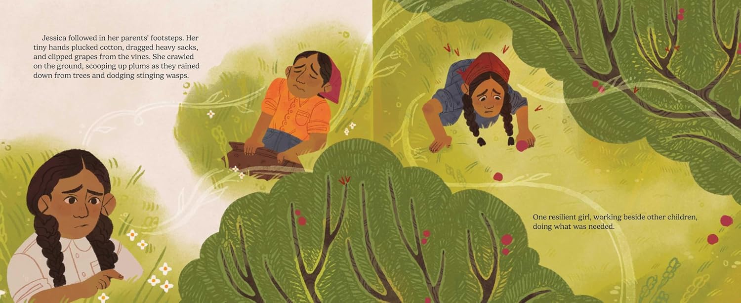 Every summer morning before dawn four-year-old Jessica and her Mexican-American family joined other families in the fields to pick crops, earning only a few dollars a day while suffering hunger, physically punishing labor, and constant exposure to chemical pesticides. Jessica picked cotton, clipped grapes, and retrieved plums from the ground. As she got older, Jessica became more aware of the struggles in her community for whom education, housing, medical care, and equal treatment were denied “just because they were Latino.”