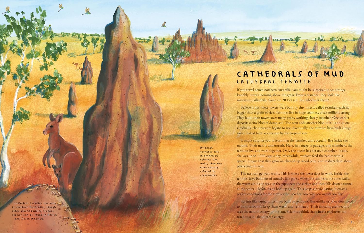 So should we be thinking out of sight, out of mind? Absolutely not! And Nature’s Tiny Champions is here with detailed profiles of 20 phenomenal creatures to show you what an enormous impact itty-bitty animals make, plus back matter that presents short, illustrated entries on 21 more tiny champions of the air, land, and sea. Ready to dive in? Let’s go!