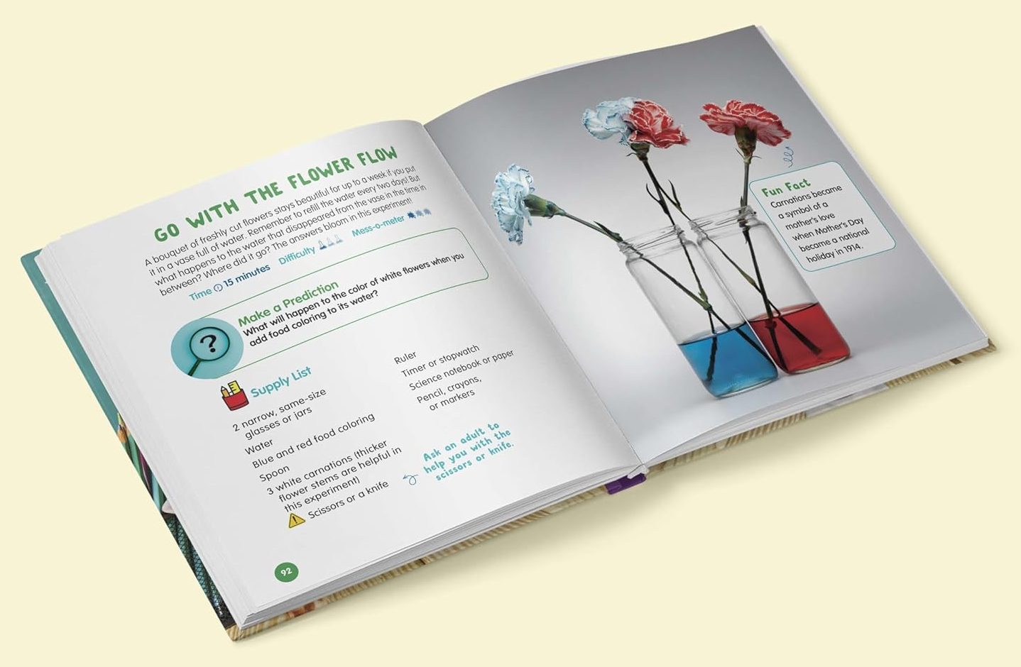 Throughout the book, experiments are also accompanied by quick “Fun Fact” and “Did You Know?” information related to each section’s topic, and here and there the Good Housekeeping scientists pop up to impart interesting tidbits that will get kids thinking. There are even funny puns to get them laughing. Each experiment also includes a Time, Difficulty, and Mess-o-meter indicator.