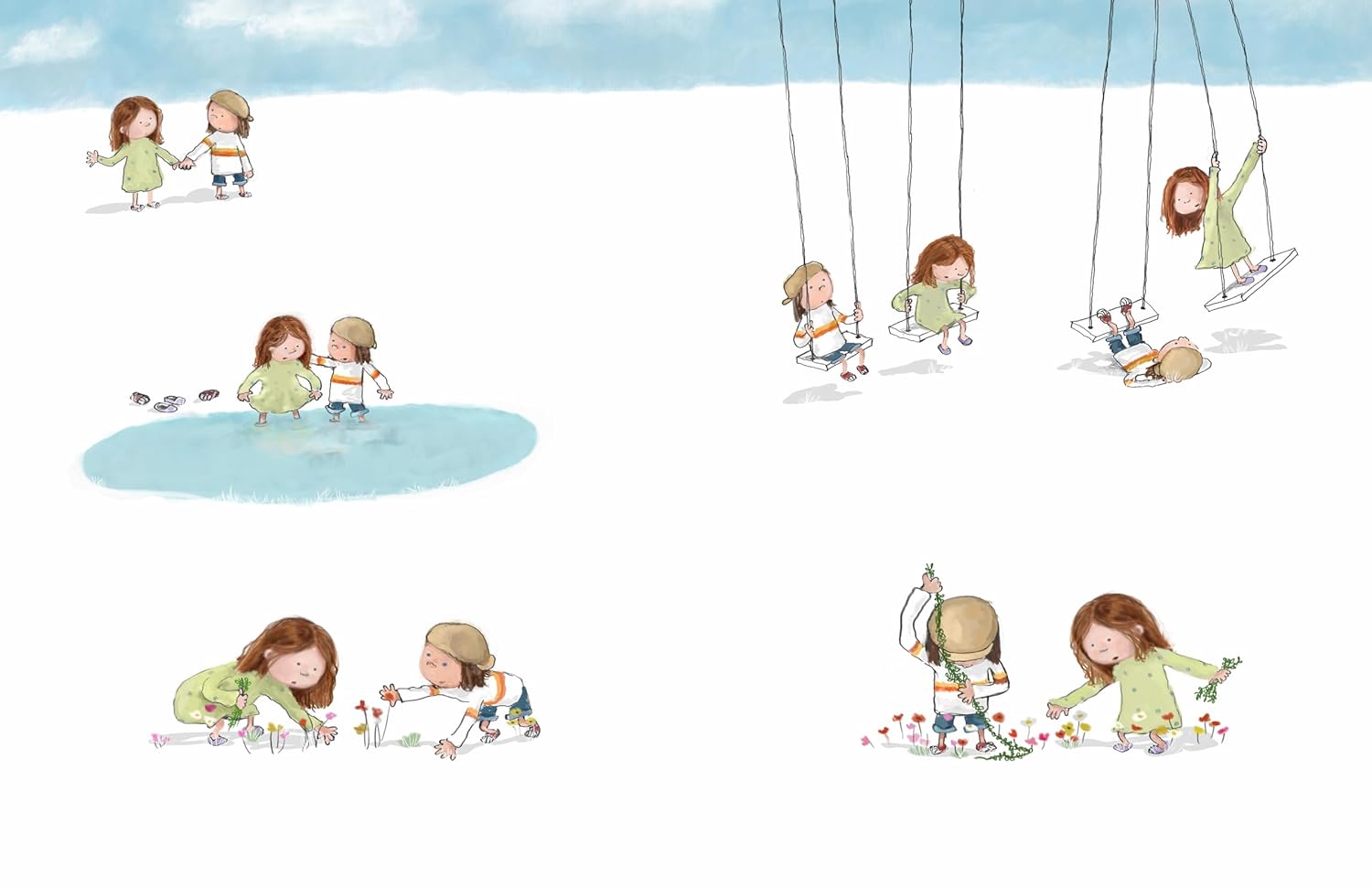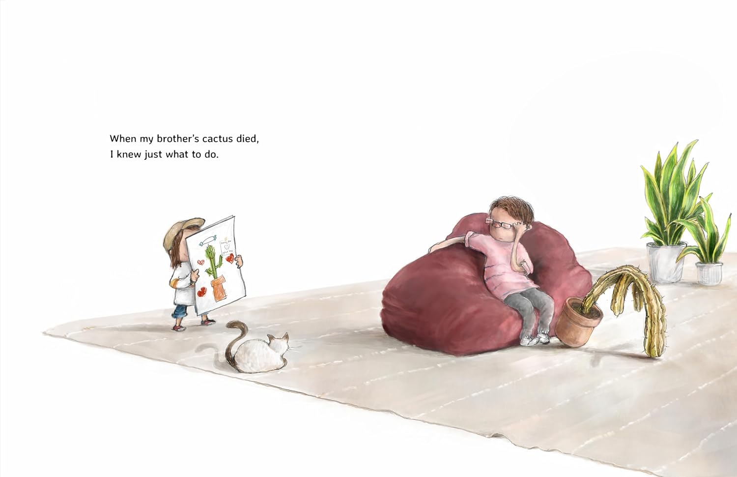 In her moving tribute to her own father, Hannah Chung draws a sweet story of the love between a father and daughter. As Nara feeds the sourdough starter and Paolo bubbles, Nara and Papa shape and score the loaf, and they watch the loaf bake together, the bread symbolizes their love and bonding over this weekly tradition. Papa’s passing may seem sudden to young readers and may need explanation by an adult, but such life-changing events can often feel abrupt and confusing to children.