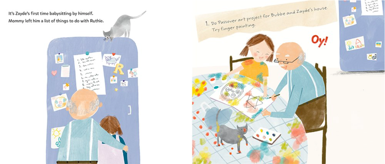 Ariel Landy’s exuberant illustrations sweep kids into the story and keep them riveted to see each new gift, from sweet Nerry to those rambunctious unicorns as well as the real gifts that so charm the little girl. Landy’s vibrant colors, warm tones, and wealth of details will keep children lingering over the pages as they celebrate Hanukkah with the young girl who is excitedly taking part in and contributing to the holiday. On subsequent readings, kids may enjoy pointing out clues to the true nature of some of the imaginative gifts.