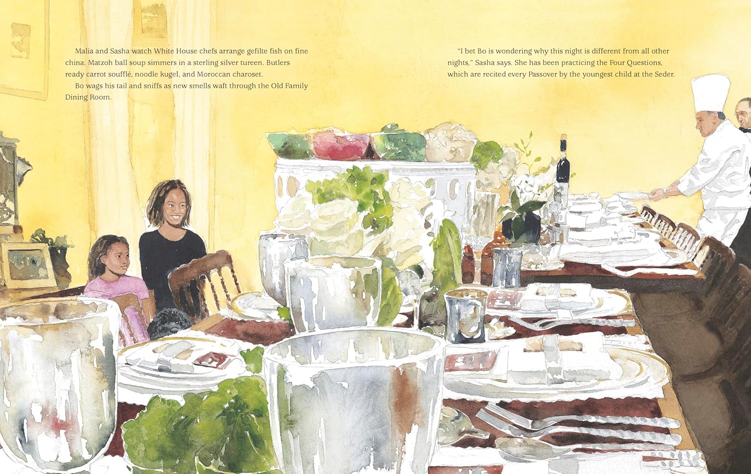 Following the story, the girl and Nerry engage in a dialogue about the history of Hanukkah, how to play dreidel, giving gifts, traditional Hanukkah foods, and even where the dragon’s name comes from.